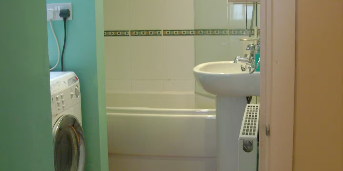 The bathroom, also leading off from the lounge at ground floor level, benefits from a full-size bath with shower, a heated electric towel rail, together with a washing machine and with dryer facility.